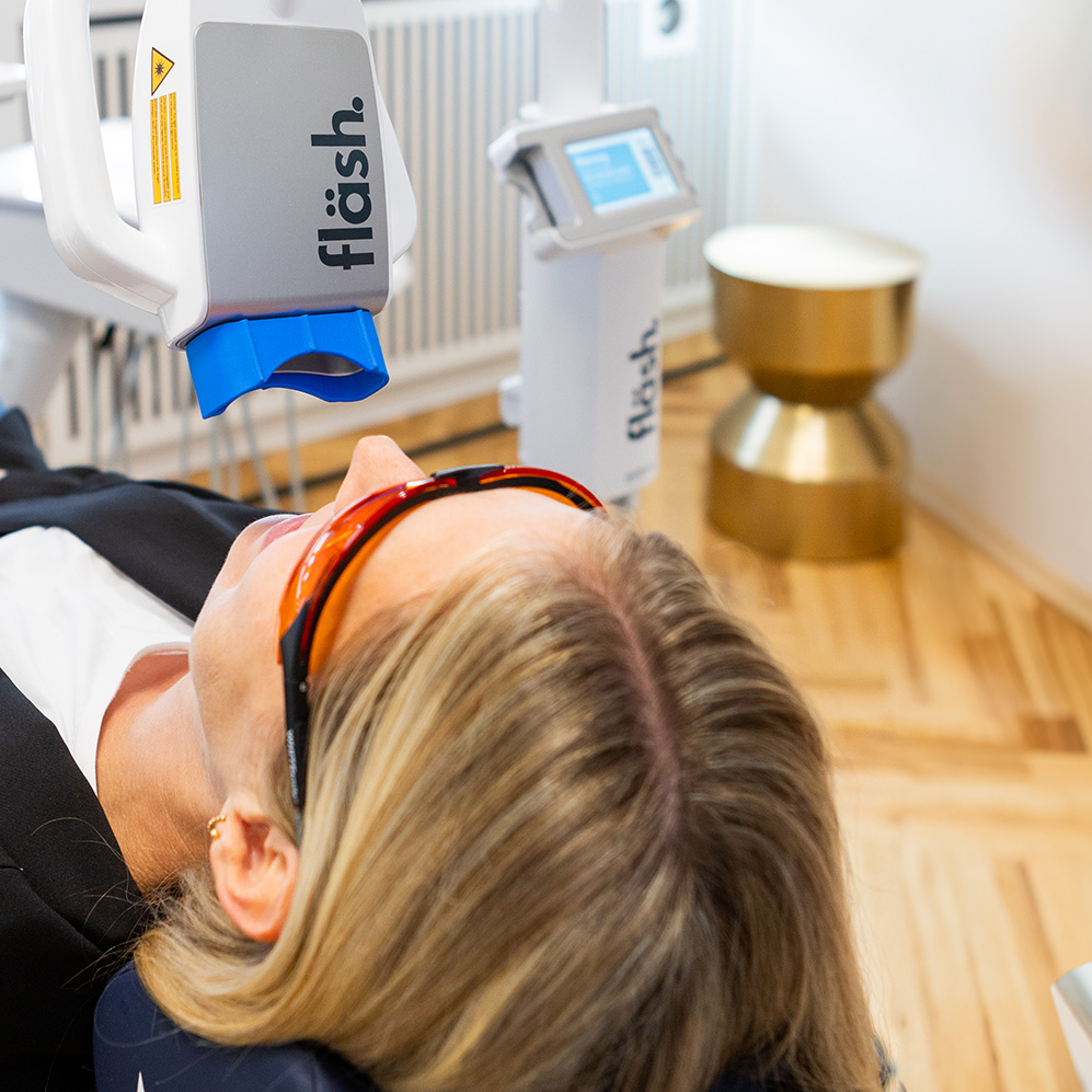 Ein strahlend weißes Lächeln wirkt jung und vital. Mit dem professionellen, lichtaktivierten Bleaching in unserer Praxis entfernen wir schonend hartnäckige Verfärbungen und sorgen für eine natürliche, aber dennoch beeindruckende Aufhellung Ihrer Zähne.