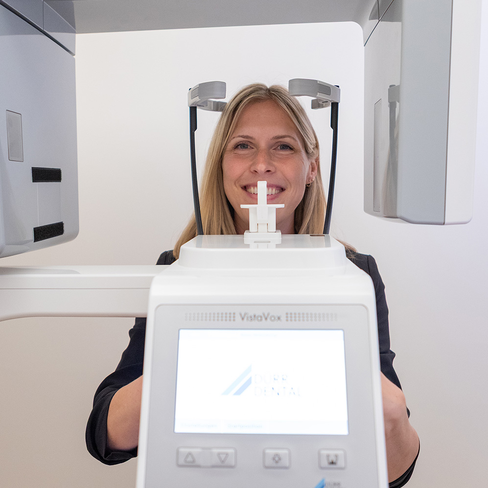 Präzision und Sicherheit stehen bei uns an erster Stelle, weshalb wir auf modernste Diagnosetechniken setzen. Mit digitalem Röntgen erstellen wir detaillierte Bilder Ihrer Zahn- und Kieferstrukturen – schnell, präzise und mit minimaler Strahlenbelastung. Für besonders anspruchsvolle Diagnosen nutzen wir die 3D-Bildgebung (DVT), die uns exakte Einblicke in Ihre Kieferanatomie ermöglicht. Diese Technologien unterstützen uns bei der Planung komplexer Eingriffe, wie Implantationen oder Wurzelbehandlungen, und sorgen für maximale Sicherheit und optimale Ergebnisse.